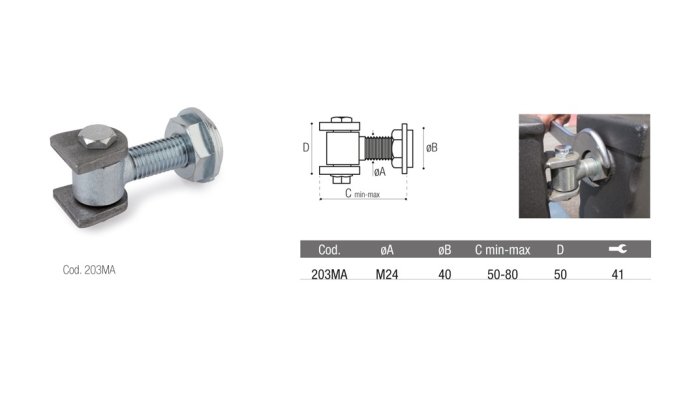 - Cardine superiore M24 con boccole regolabili ADEM 203MA