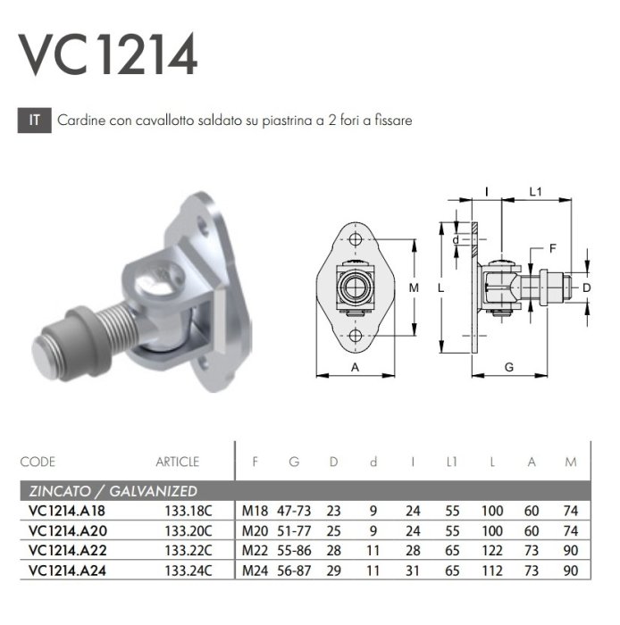 - Cardine cancello in acciaio zincato con cavallotto saldato su piastra 2 fori FAC VC1214 - | M18