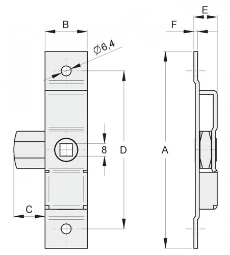 Chiavistello catenaccio quadro 8 mm per sportelli FAC 232P (mm 101x18) VL0520.001