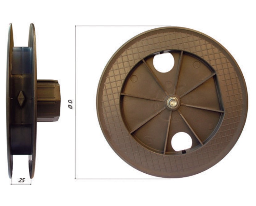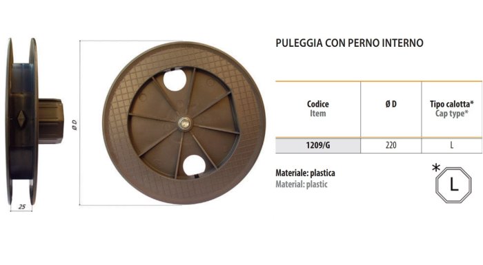 - Puleggia in PVC per tapparella ø 220 mm, ottagonale 60, con perno interno Bolis 1209/G