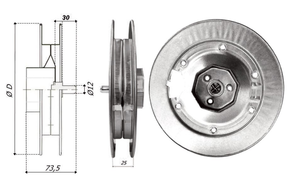 - Larghezza puleggia 25 mm