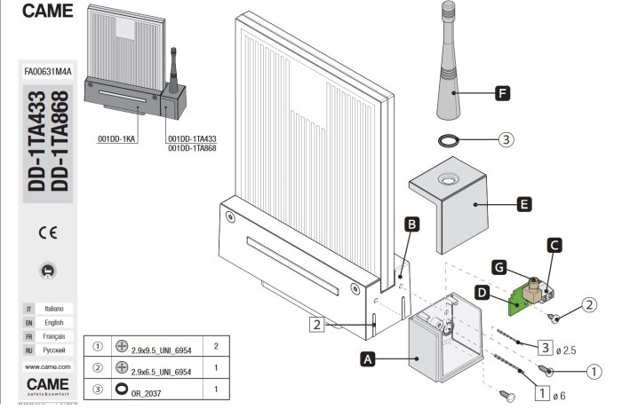 Came 001DD-1TA433 antenna accordata 433.92 - 868.35 MHz