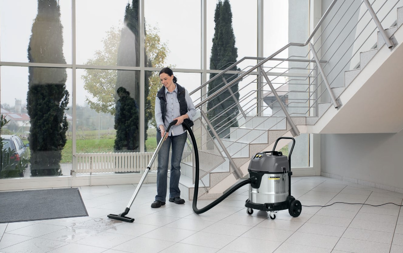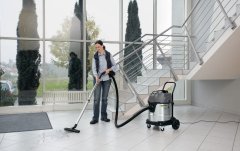 L'aspiratore solidi liquidi con doppio motore NT 50/2 Me Classic raccoglie sporco luqido, grossolano e polvere senza fatica. Il vano raccolta è da 50l. L'aspiratore è molto maneggevole e robusto. L'archetto di spinta e lo chassis robusto con rotelle in metallo garantiscono grande agilità e maneggevolezza. Il filtro è a cartuccia e anche questo aspiratore è dotato di Easy Service Concept (assistenza facilitata). L'NT 50/2 Me Classic è pensato per aspirare grandi quantità di sporco.