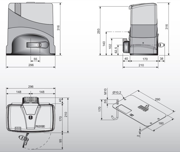 - Programmatore elettronico incorporato con autoapprendimento della corsa del cancello.