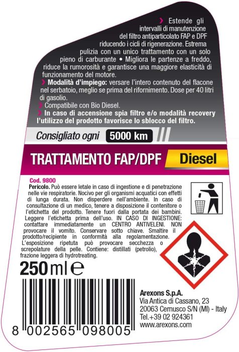 - Additivo Diesel Trattamento Fap/Dpf Arexons 9800 ml250