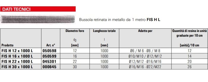 Bussola retinata Fischer FIS H L in metallo da 1 mt - ø mm 12