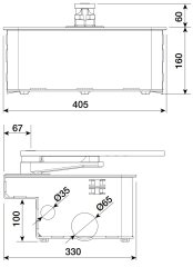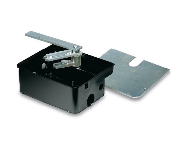 - Cassa di fondazione in acciaio completa di leva di aggancio sblocco, staffa di fissaggio al cancello e vite per la regolazione del punto di finecorsa in apertura.