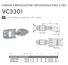 Cardine cancello a regolazione ortogonale apertura ante fino a 180° FAC 236 - VC3301 - | M18