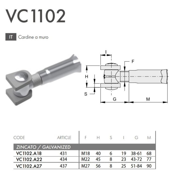 - Cardine per cancello a murare in acciaio zincato FAC VC1102 - | M18