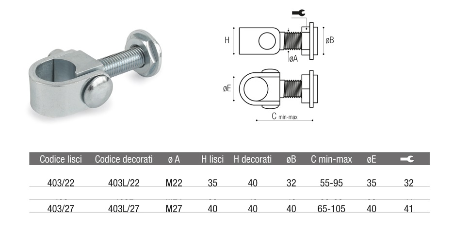 - Cardini superiori con boccola a saldare ADEM 403 - M 22