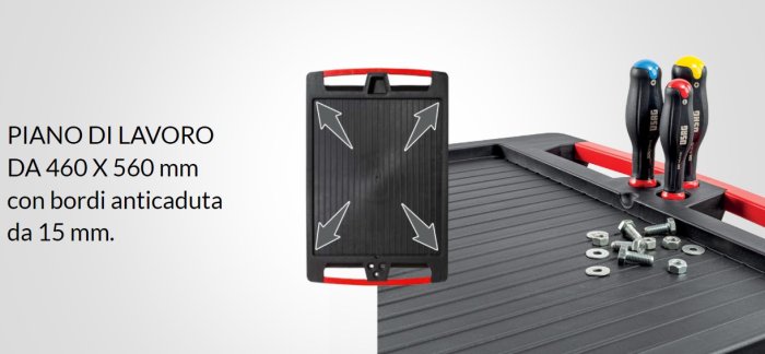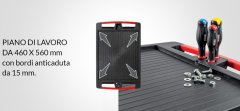 - Piano di lavoro in ABS ad alta resistenza con bordo anticaduta da 15 mm
