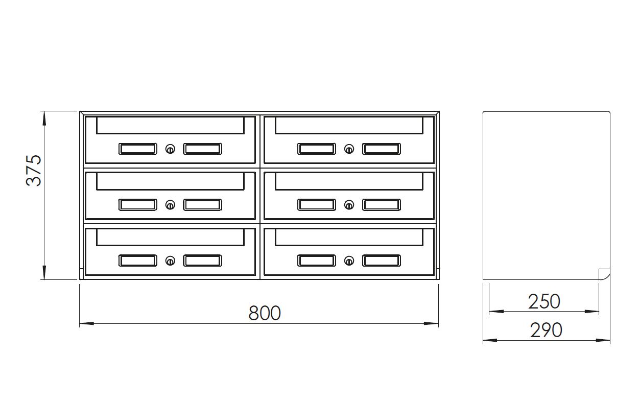 - Il casellare viene fornito già composto in gruppi da 6 cassette SC5 (cassetta standard) con ritiro della posta nella parte anteriore