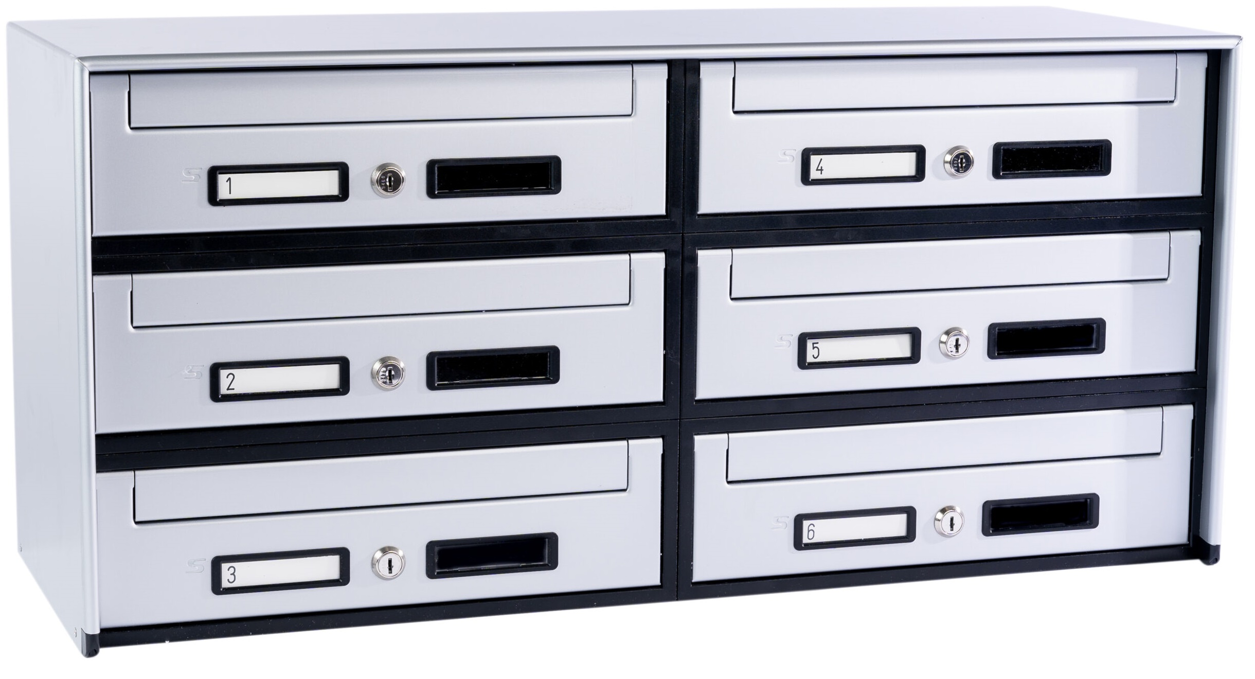 Casellario postale 6 cassette (SC5) a ritiro anteriore, argento SILMEC 6B2-501.72