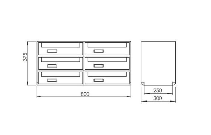 - COMPOSTO DA NR. 6 CASSETTE SU DOPPIA COLONNA base 805 mm - altezza 380 - profondità 300 mm