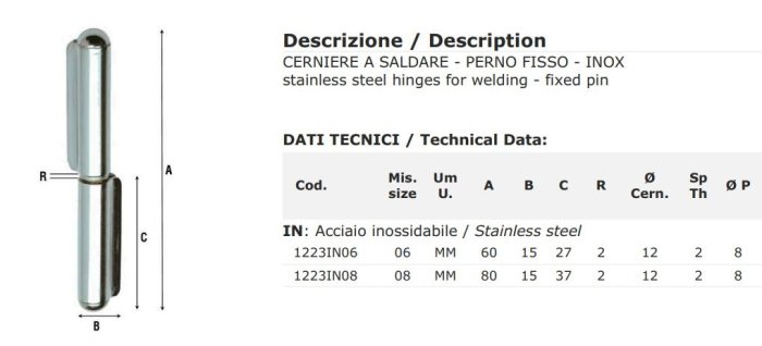 - a saldare e con perno fisso