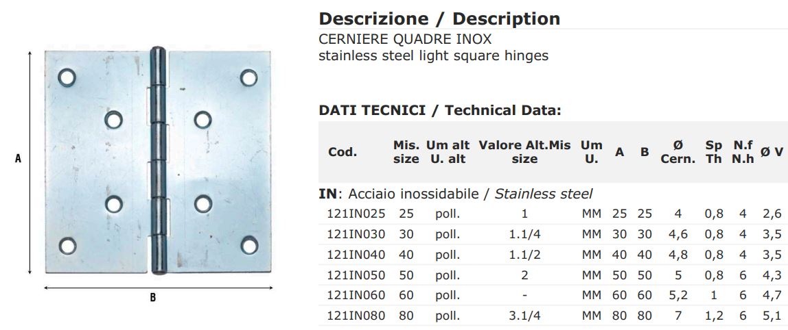 Cerniere 2 ali forate in acciaio inox Aldeghi 121IN