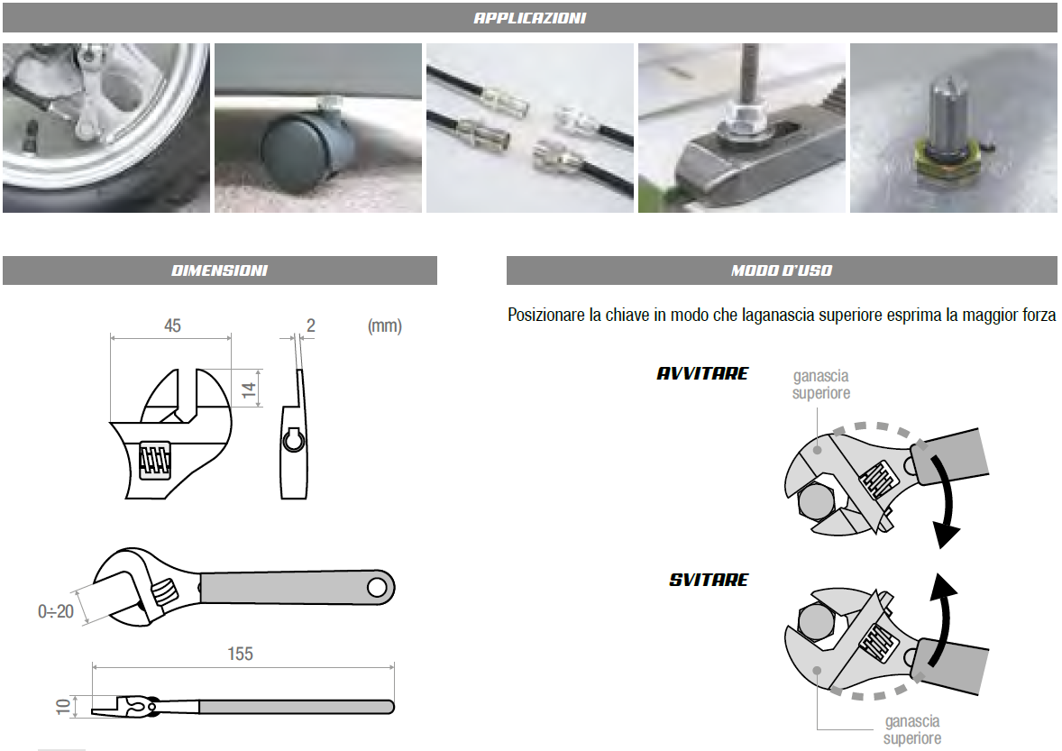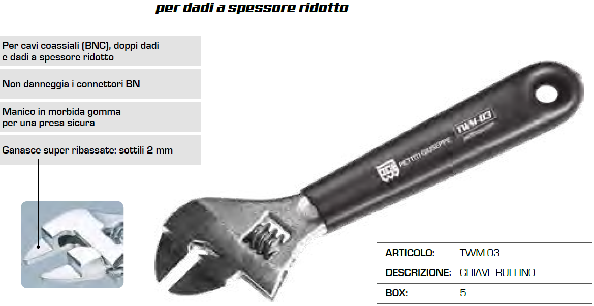 - Chiave a rullino ribassata regolazione 0-20 mm Pettiti TWM-03