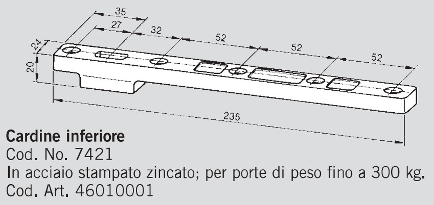 - Cardine inferiore 180° Cod. No. 7421 per chiudiporta BTS