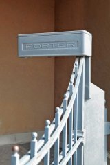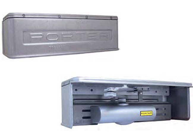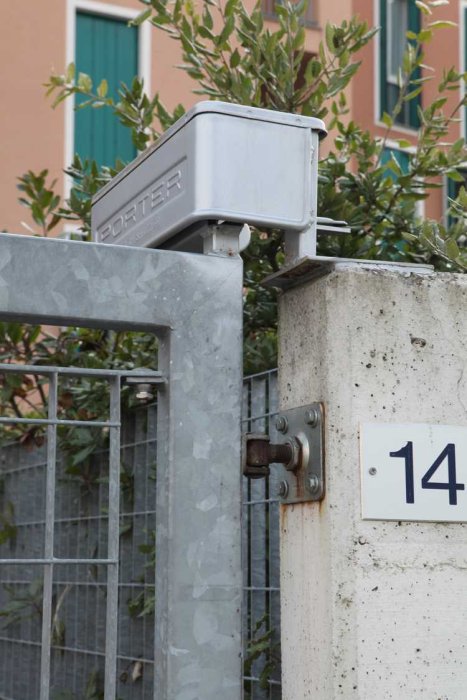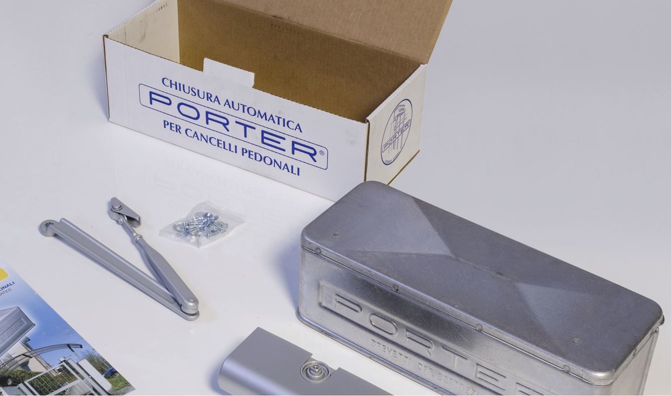 Il Porter® viene fornito con scatola di montaggio unica, di facilissima applicazione sia per cancelli leggeri che pesanti, sia destri che sinistri, sia per colonne in ferro che in cemento. Il cancello funziona con apertura da fuori a spingere, ritorno automatico con pausa frenante a fine corsa e scatto finale a chiudere.