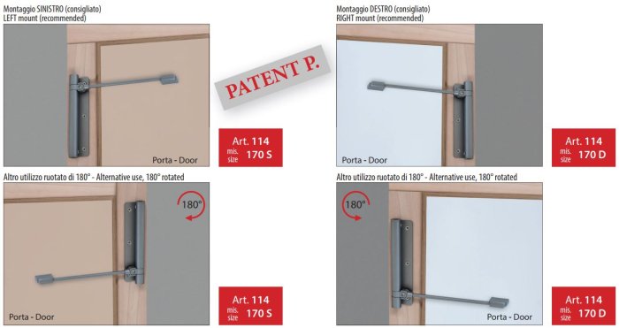 - Il nuovo chiudiporta “ Ercole “ è progettato per garantire la chiusura di porte fino a cm 210 di altezza e cm 90 di larghezza con peso fino a kg 60.