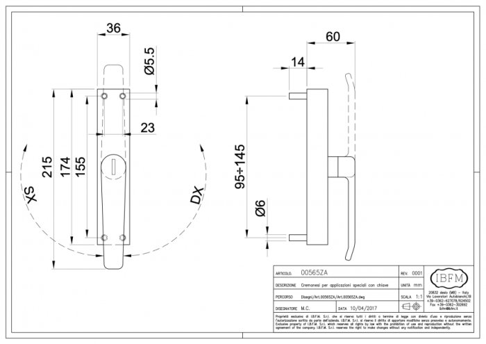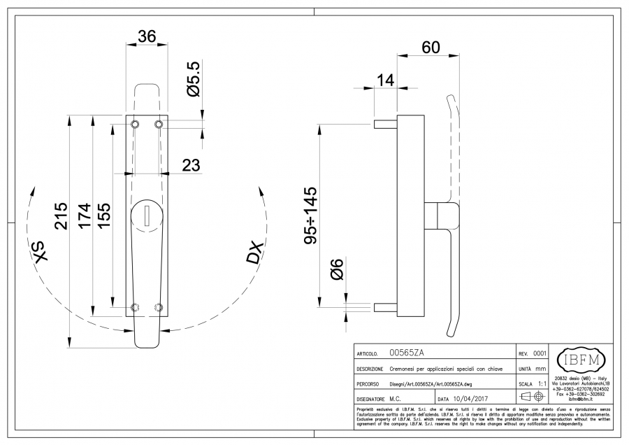 - Cremonese con chiave IBFM 565/ZA - Apertura DX