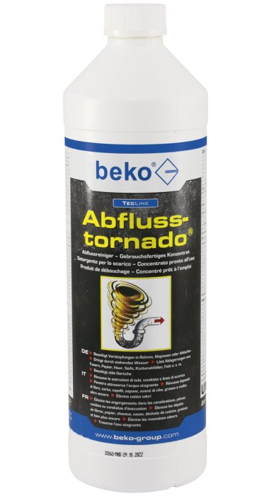 Concentrato pronto all’uso, Rimuove le ostruzioni di tubi, condotte e linee di scarico, penetra attraverso l’acqua stagnante, elimina cattivi odori, utilizzo universale, facile da applicare, azione rapida, rimuove depositi di fibre, carta, capelli, sapone, avanzi di cibo, grasso e molto altro ancora, privo di tensioattivi, cloro e fosfati.
