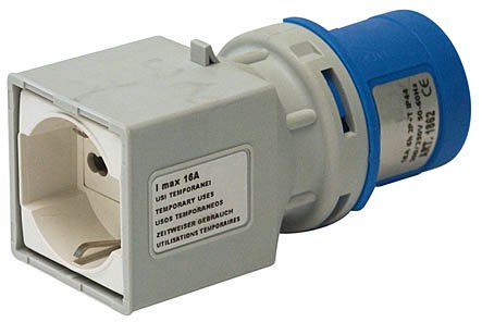 - Adattatore spina 3 poli 16A/230V IP44 + Presa IT10/16A + schuko