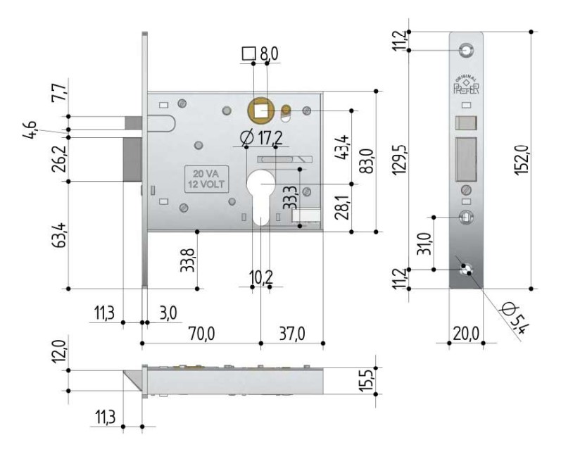 Elettroserratura a infilare per profili metallici E70 mm PREFER 5801 - mano DX