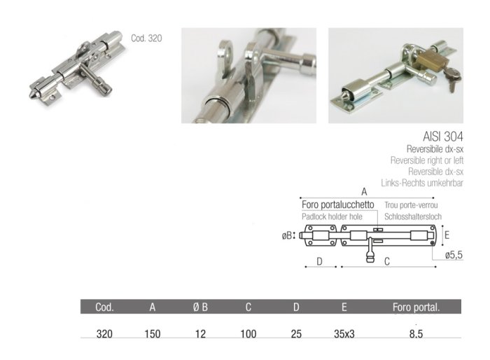 Catenaccio in acciaio INOX a saldare porta lucchetto ADEM 320