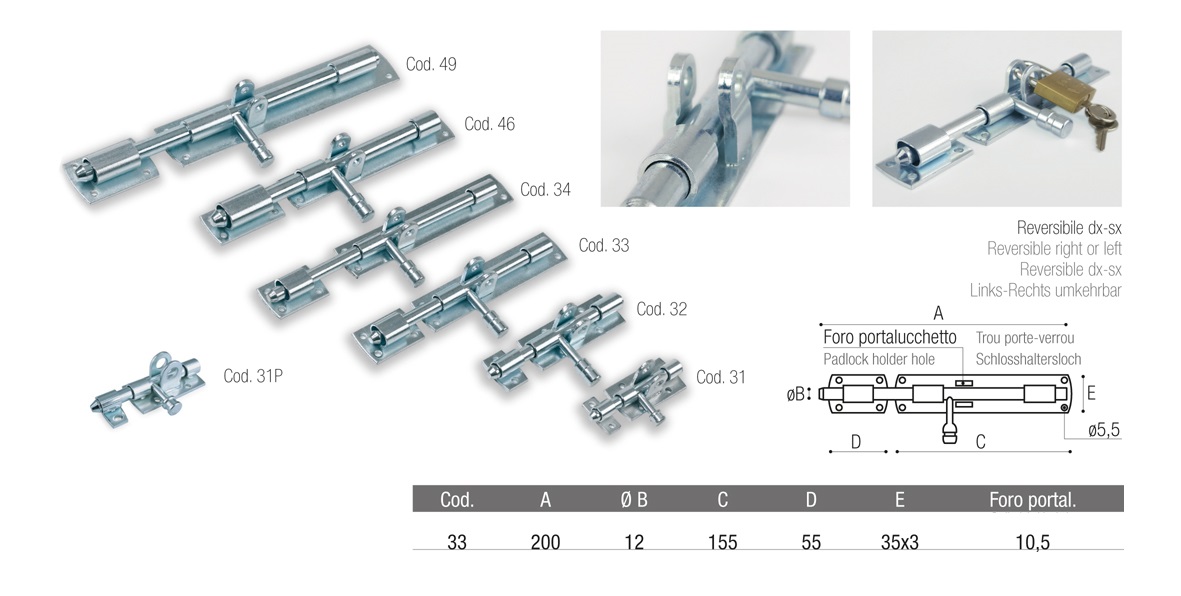 Catenaccio orizzontale con foro porta lucchetto ADEM 33