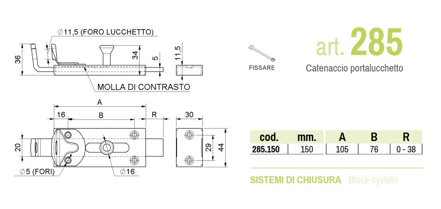 - Catenaccio porta lucchetto zincato mm 150 Combi 285