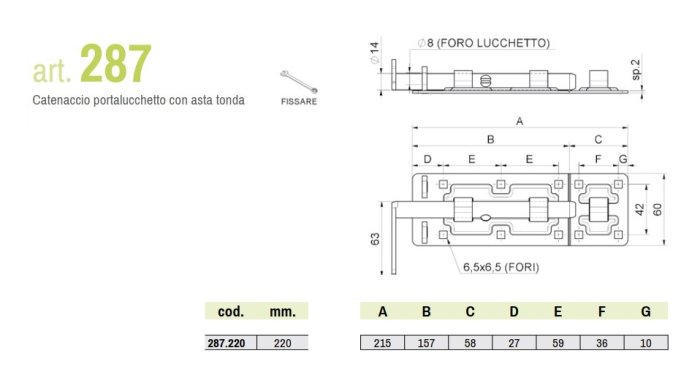 - Catenaccio porta lucchetto zincato mm 220 Combi 287