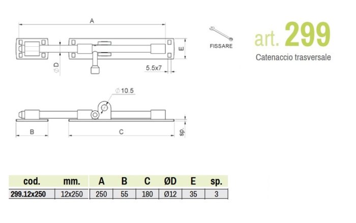 Catenaccio trasversale porta lucchetto mm 250 Combi 299