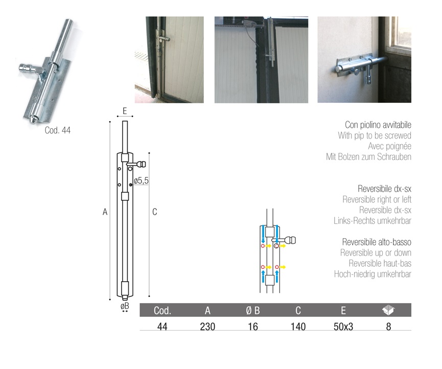 - Catenaccio verticale con piolino ADEM 44 - mm 230 ø 16 mm