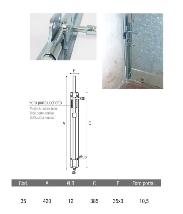 Catenaccio verticale con foro porta lucchetto ADEM 35