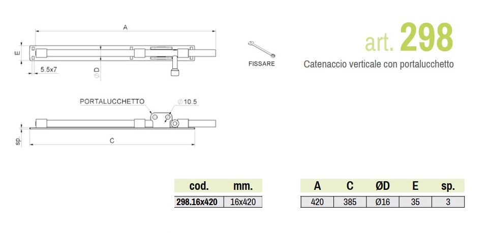 - Catenaccio verticale porta lucchetto mm 420 zincato Combi 298
