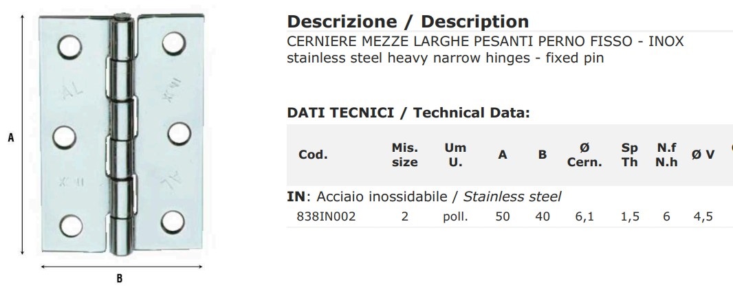- Cerniera 2 ali forate in acciaio inox Aldeghi 838IN mm 50x40