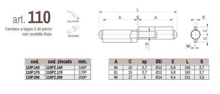 - cerniera a tappo 2 ali a saldare art. 110P