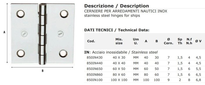 - Cerniere nautica 2 ali in acciaio inox Aldeghi 850IN - mm 40x30