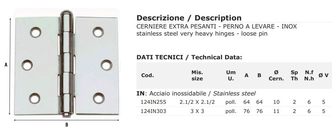 Cerniere pesanti quadre a 2 ali in acciaio inox Aldeghi 124IN