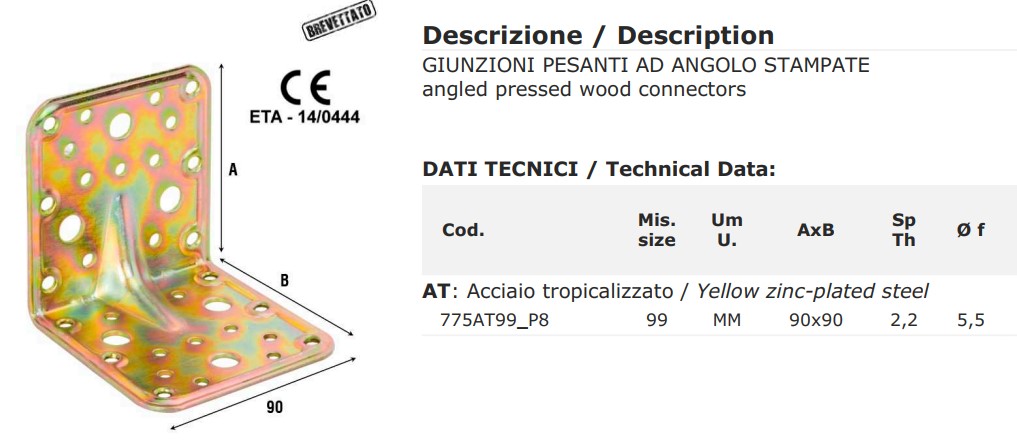 - Giunzione angolo acciaio tropicalizzato Aldeghi 775AT mm 90x90