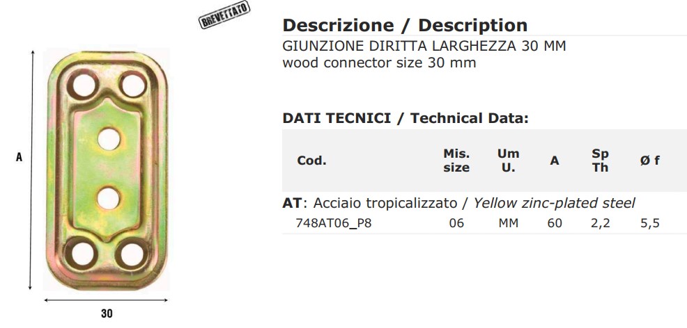 - Giunzione diritta acciaio tropicalizzato Aldeghi 748AT mm 60x30