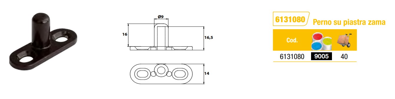 Perno diritto su piastra in zama ø 9 mm Torbel 6131080