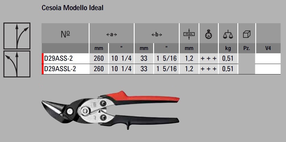 - Disponibile per taglio destro (D29ASS-2) e sinistro (D29ASSL-2)