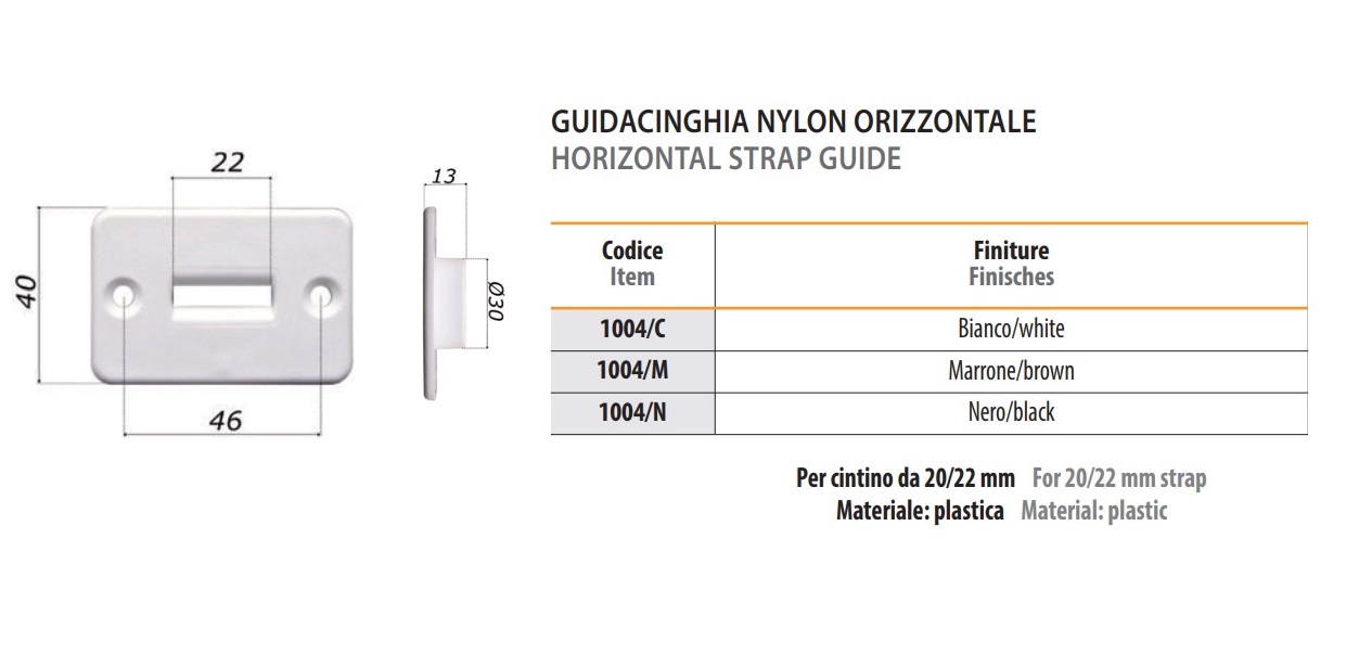 - Guidacinghia orizzontale per cintino tapparella mm 20/22 Bolis 1004 - - bianco