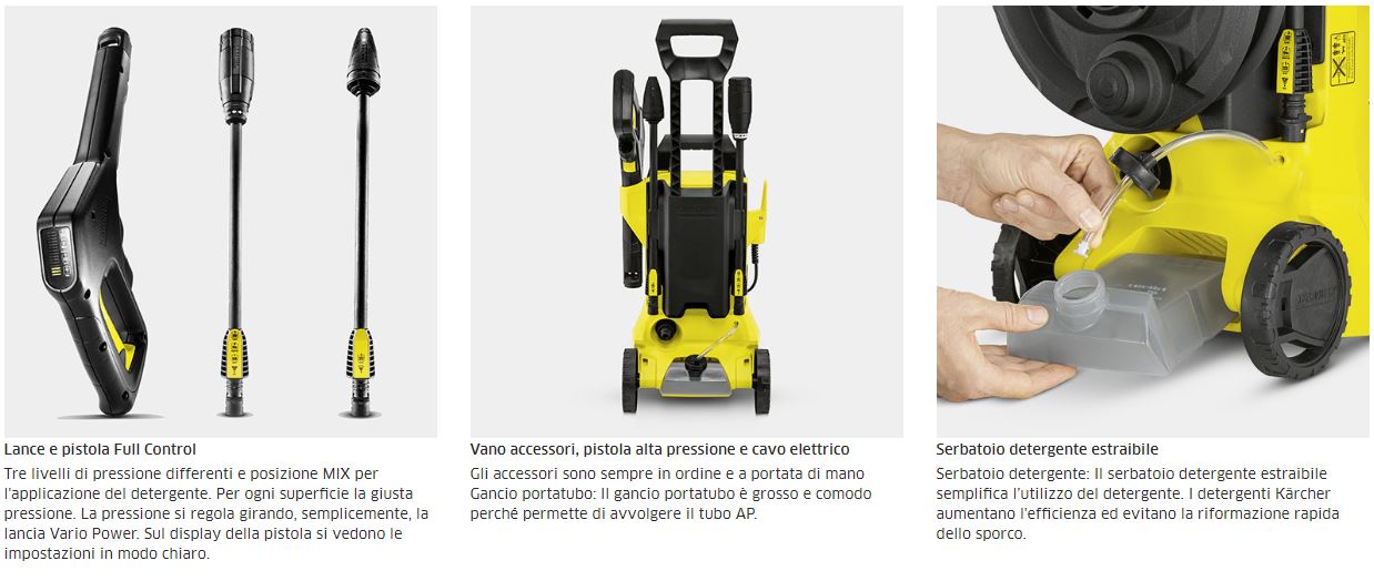 - La K 3 Full Control è un'idropulitrice entry level con innovativo sistema di controllo pressione e portata visibile sul display della pistola: è sufficiente girare la lancia vario power sul simbolino che indica l'oggetto da lavare perché sulla pistola si visualizzi il comando.