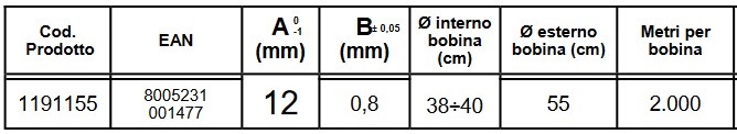 - larghezza mm 12 - spessore mm 0,8