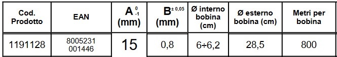 - Resistenza allungamento: 28 ÷ 32 Kg/mm2: (15 ÷ 35%).