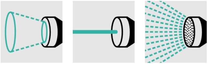 Il getto è regolabile in tre forme a ventaglio, puntiforme e a pioggia