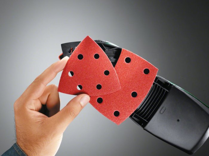 - Così la PSM 160 A risulta adatta per i più svariati lavori di levigatura: lungo gli spigoli, negli angoli o su superfici di grandi dimensioni. Inoltre la parte anteriore della piastra di levigatura, dalla forma a delta, è girevole.